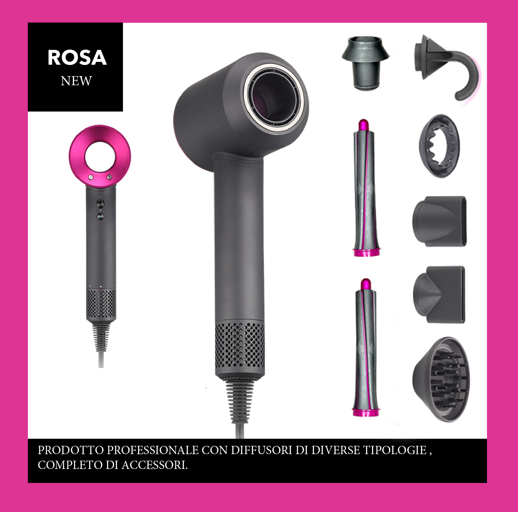 Asciuga capelli ad alte prestazioni 220V, senza pale, progettato per la cura e lo styling dei capelli. Dispositivo elettrico con tecnologia agli ioni negativi per un’asciugatura delicata e professionale.